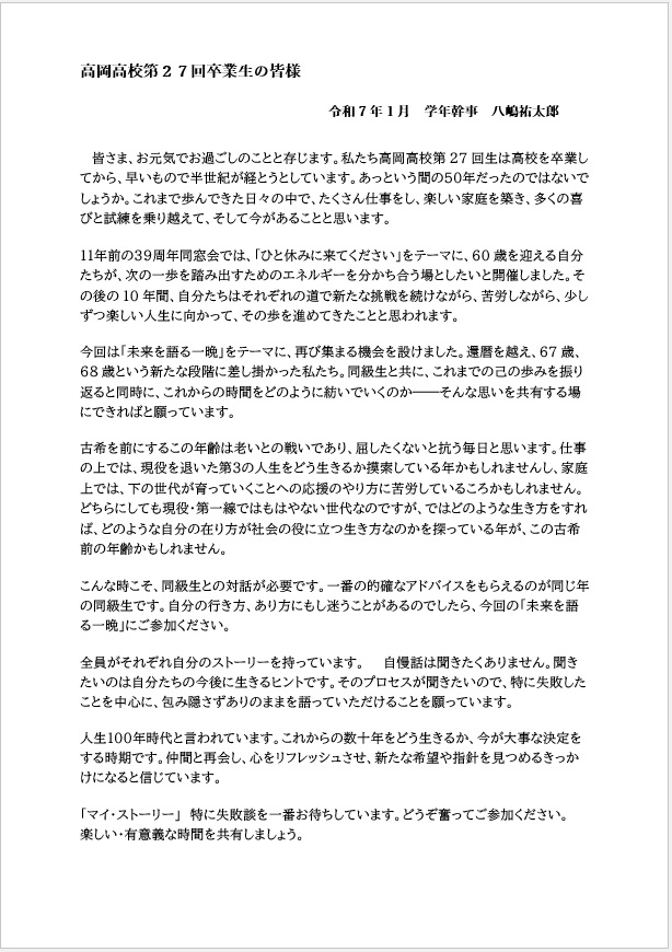 最後の締めの挨拶が、学年幹事の八嶋さんよりありました。